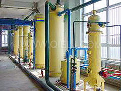 合格的脫色油進入螺旋板換熱器回收大部分熱量后進入高壓蒸汽加熱器加熱到工藝溫度(240-260℃)后