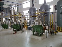 米糠油精煉設備 主要特點:采用物理精煉工藝,不需要通過堿煉脫酸,避免了中性油損失,大的降低了生產成